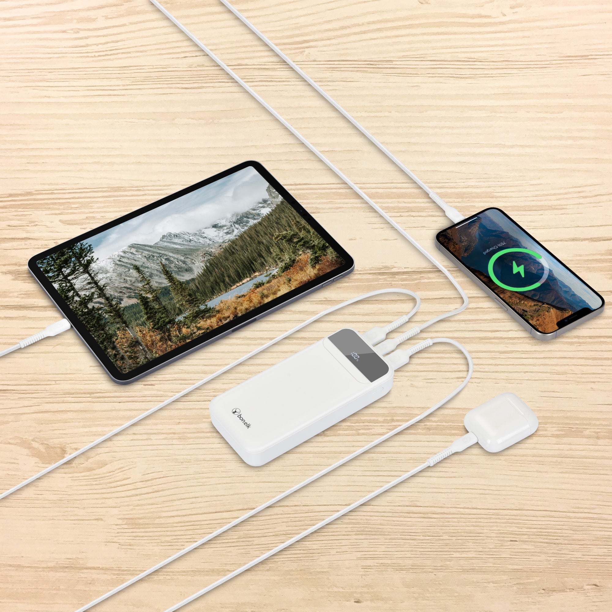 Bonelk 20k mAh Power Bank Pro, 1 x USB-C PD20W, 1 x USB-A QC22.5W - White